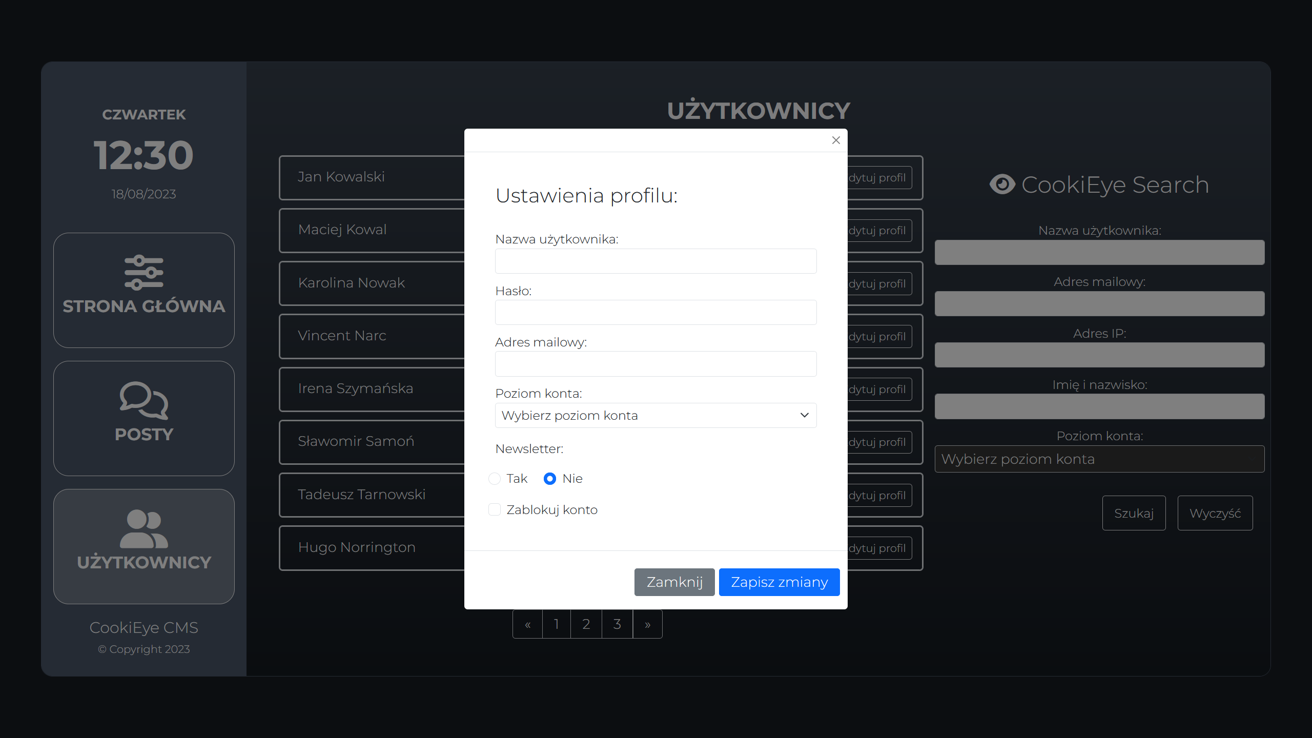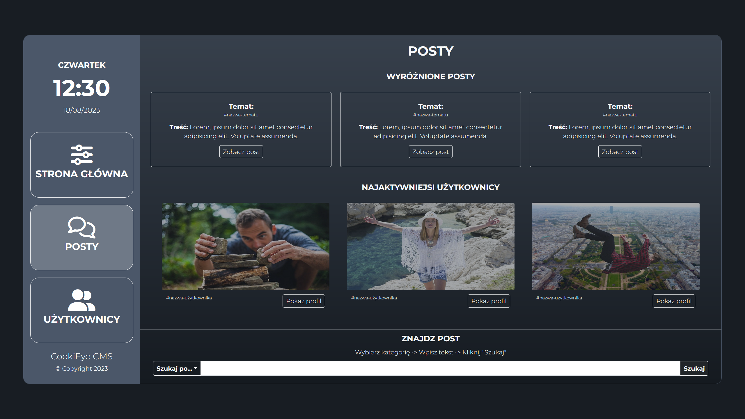 - (hypothetical) CMS app to control social media website service (Only frontend!).