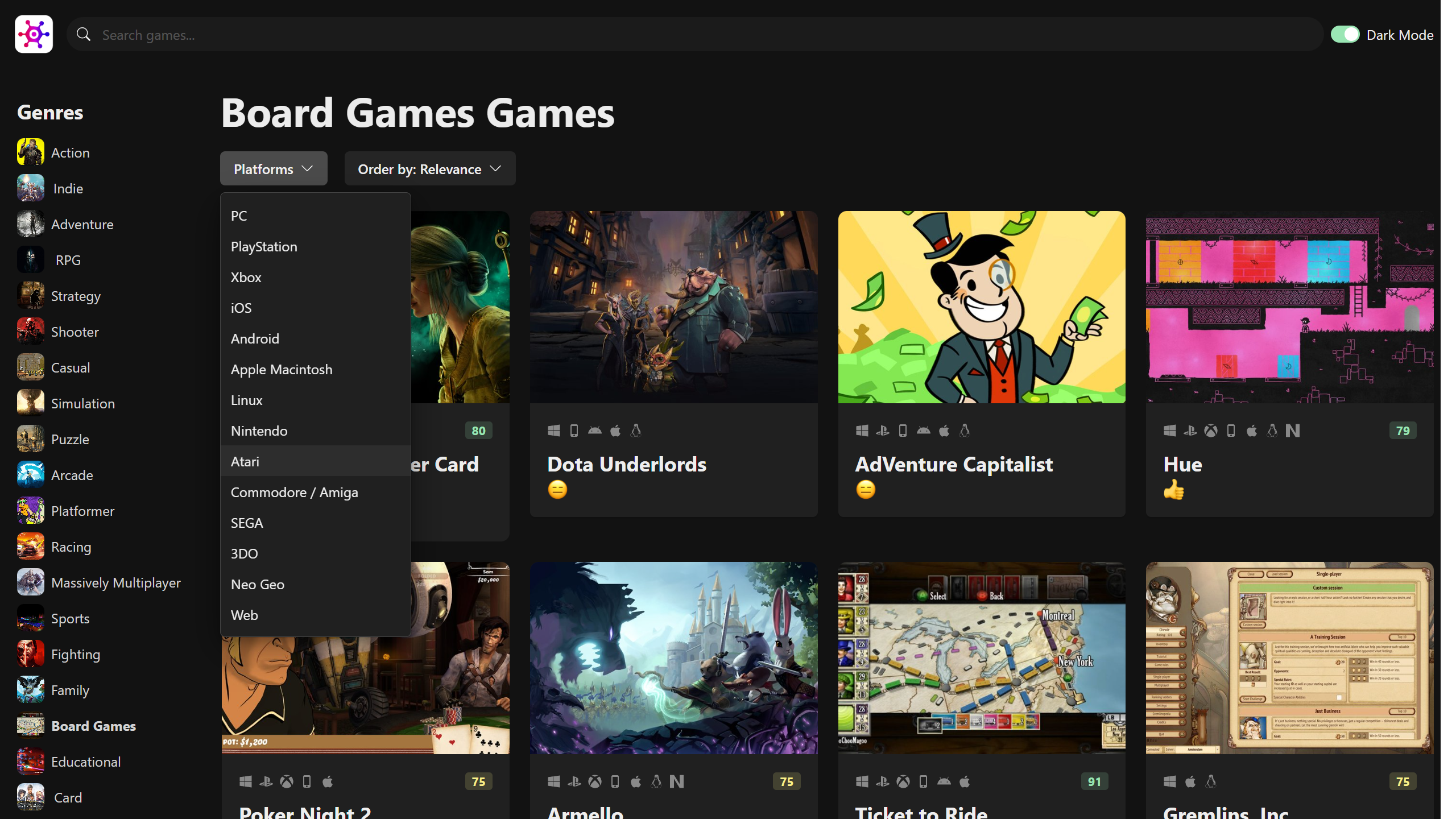 - Each game is a dedicated card. On the card, You can see the rate of the game, full name, platforms that