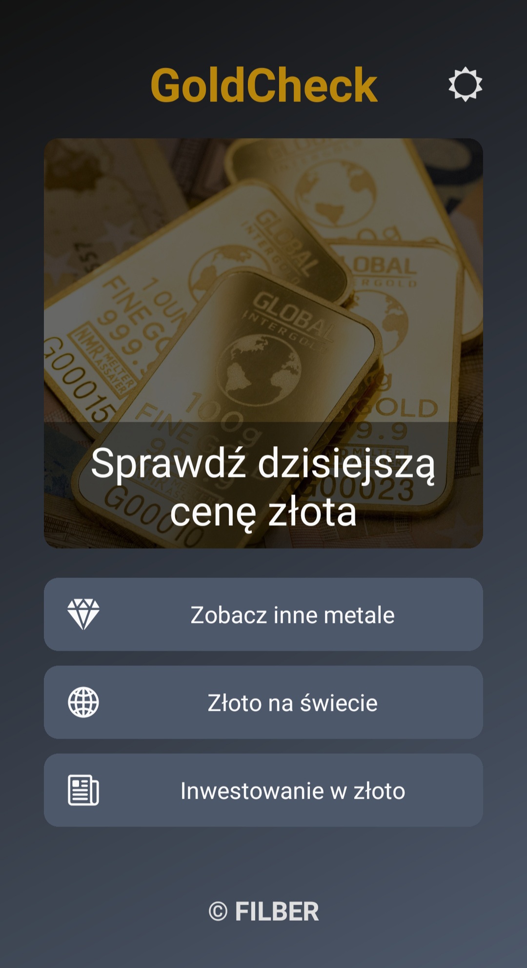 - The app fetches and displays the current price of gold in real-time using the MetalPriceAPI
