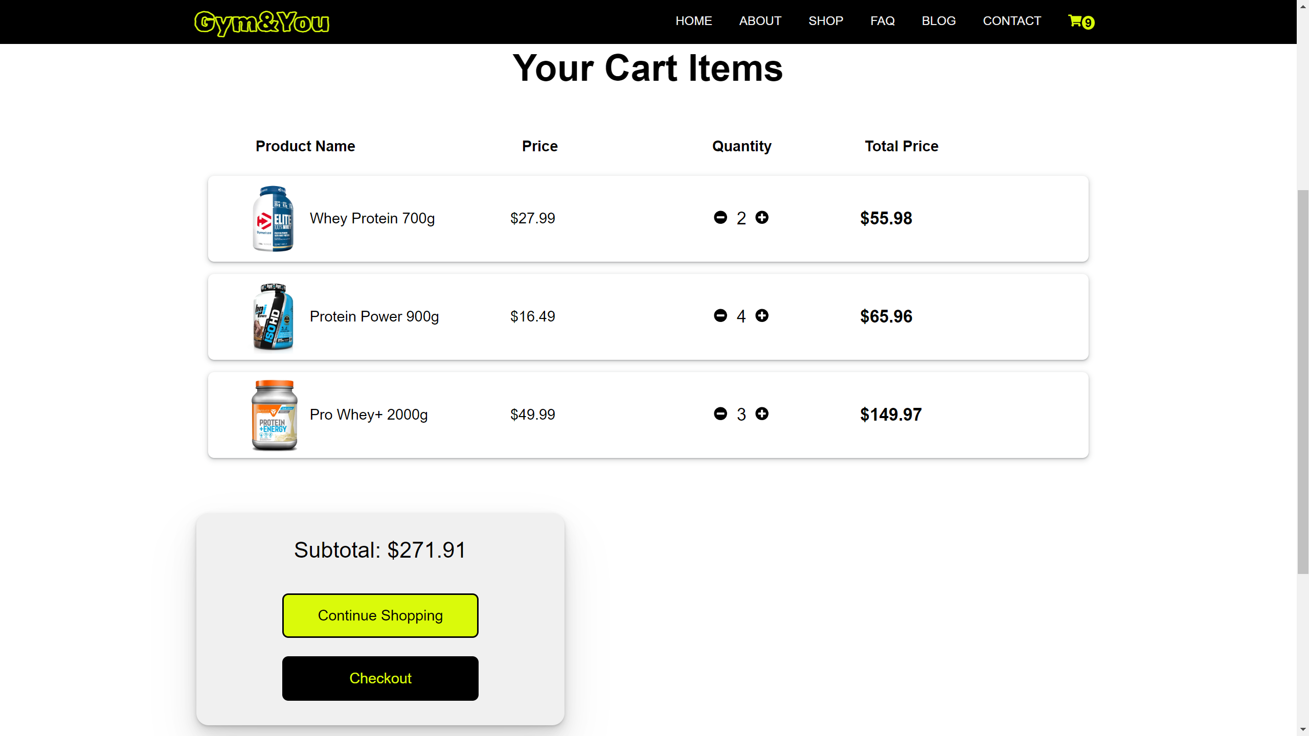 - Website contains few subpages: About, Shop, FAQ, Blog, Contact and Cart.