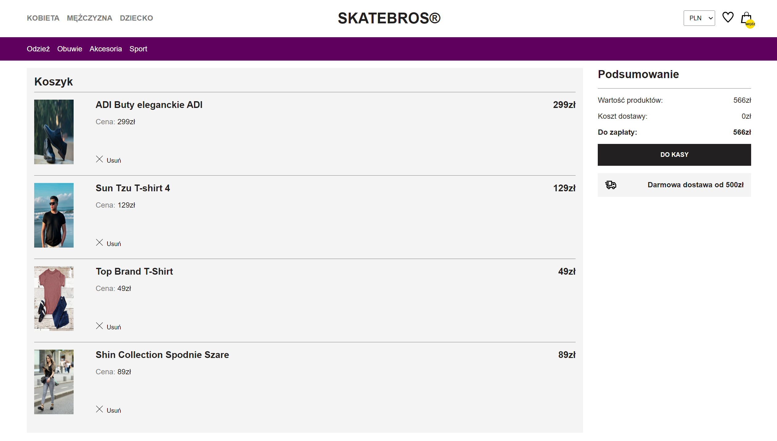 - Website contains three main gender-based categories: Kobieta, Mężczyzna, Dziecko. Each gender category contains few subcategories, such as: Odzież, Obuwie, Akcesoria, Sport. Then again, each of these categories contains few more categories to chose from.