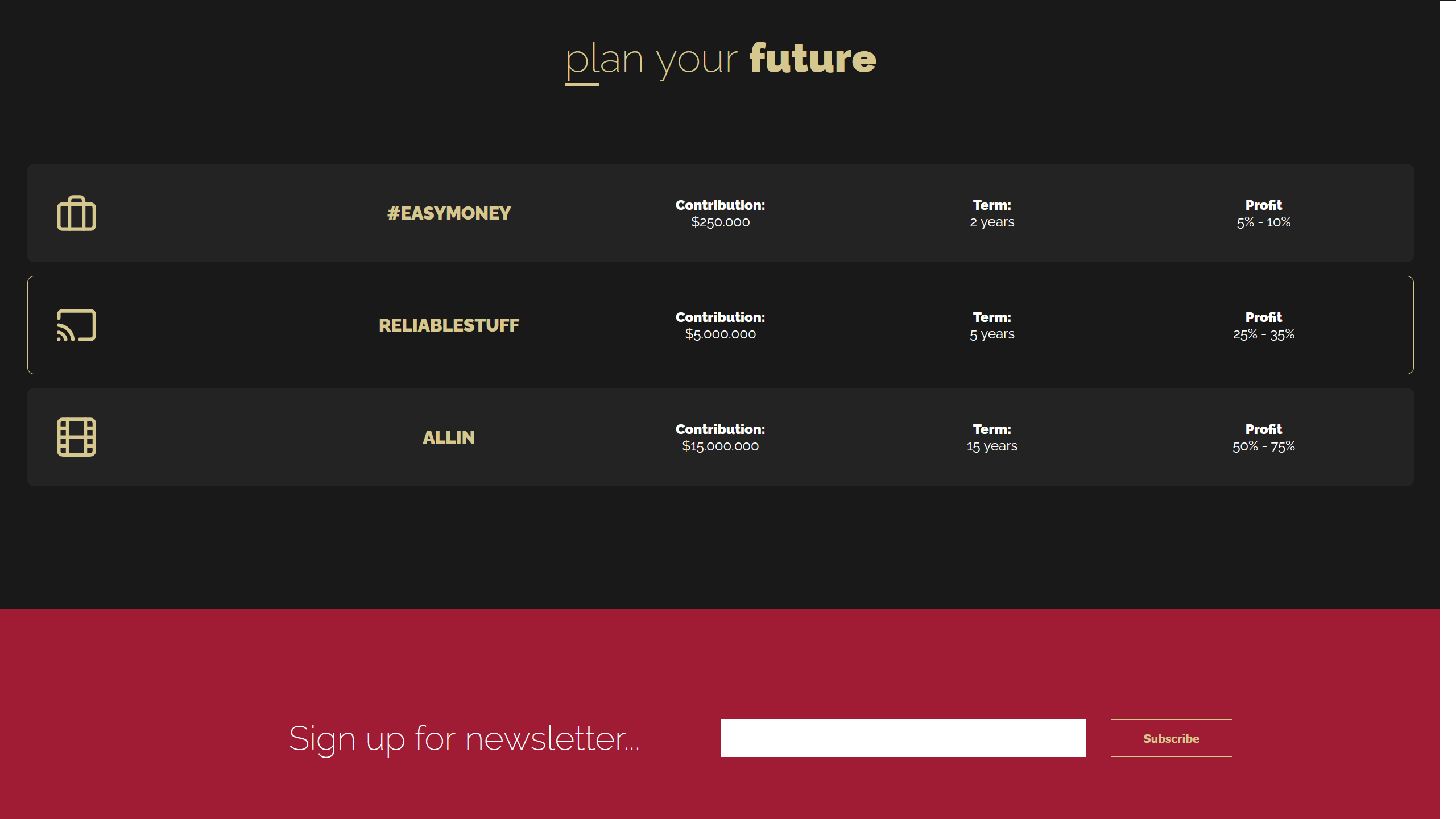 - Website of a (hypothetical) company called Invest With Us.