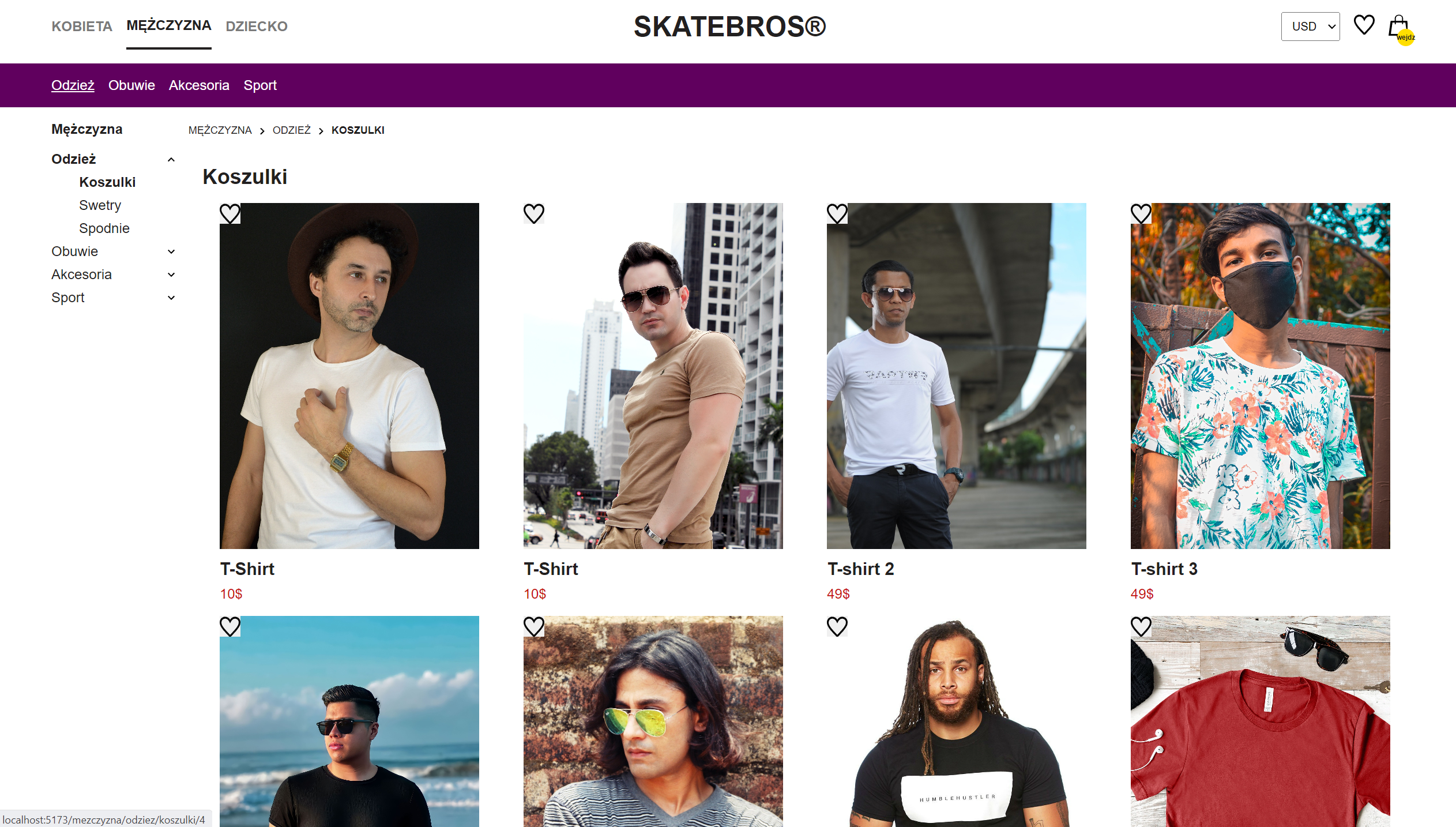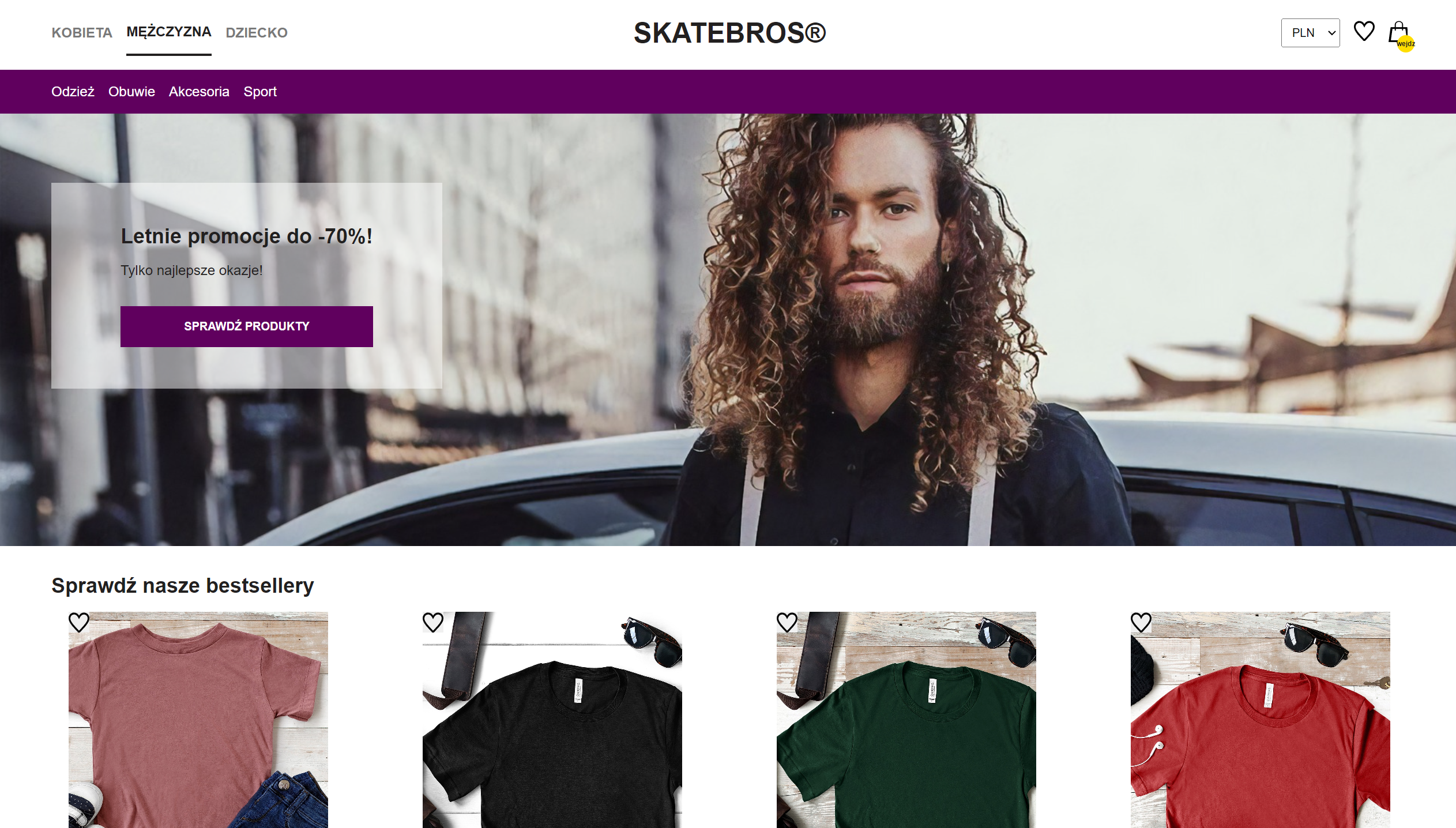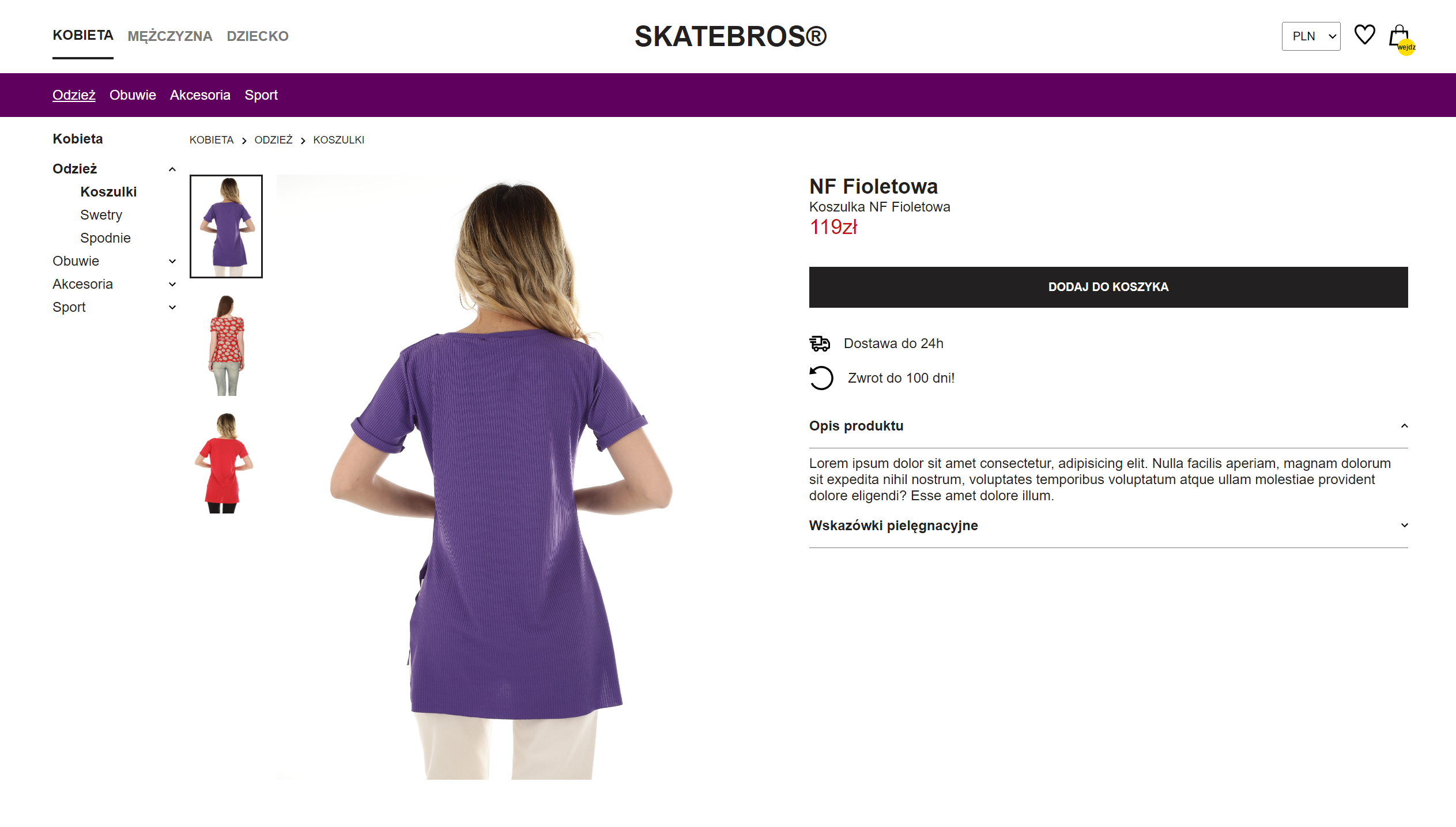 - Website contains three main gender-based categories: Kobieta, Mężczyzna, Dziecko. Each gender category contains few subcategories, such as: Odzież, Obuwie, Akcesoria, Sport. Then again, each of these categories contains few more categories to chose from.